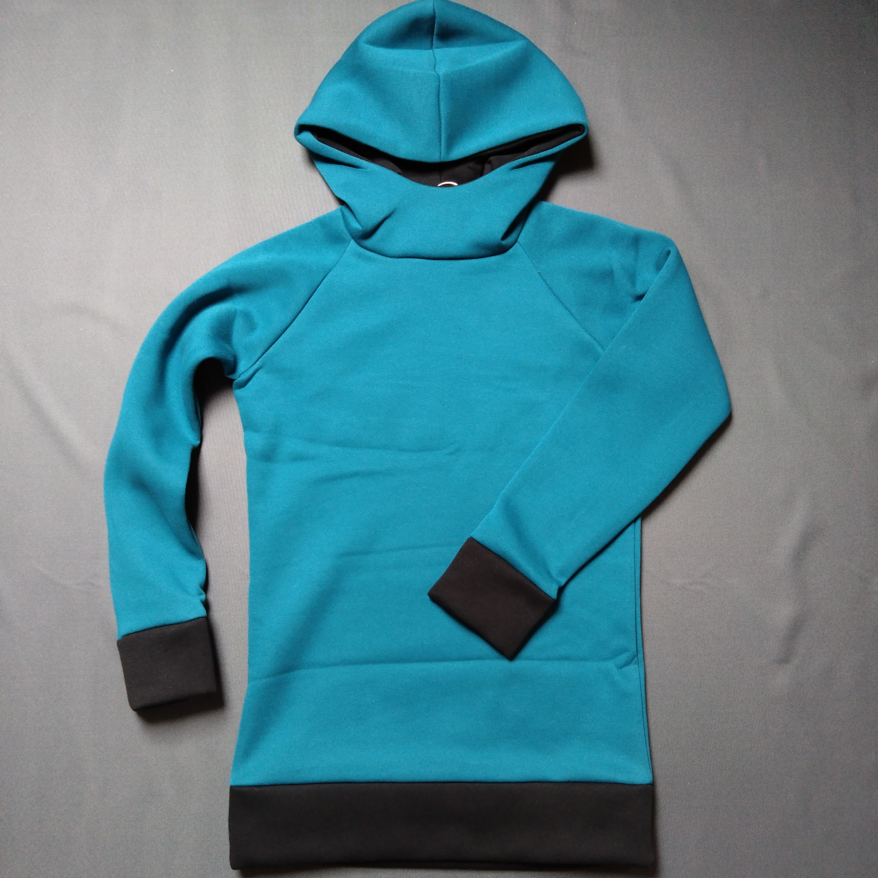 2. Czarny kaptur z turkusowym w środku: